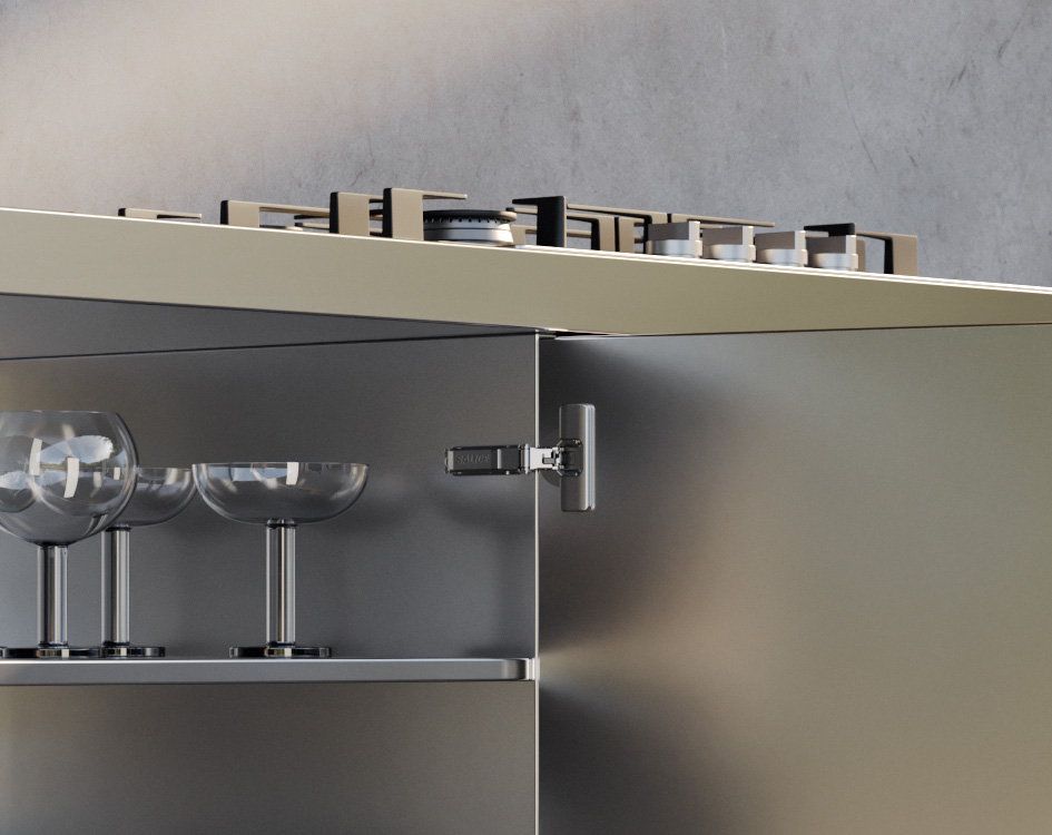The Silentia+ system with double integrated damper, for smooth and silent closing, is sealed and protected against dust and humidity.