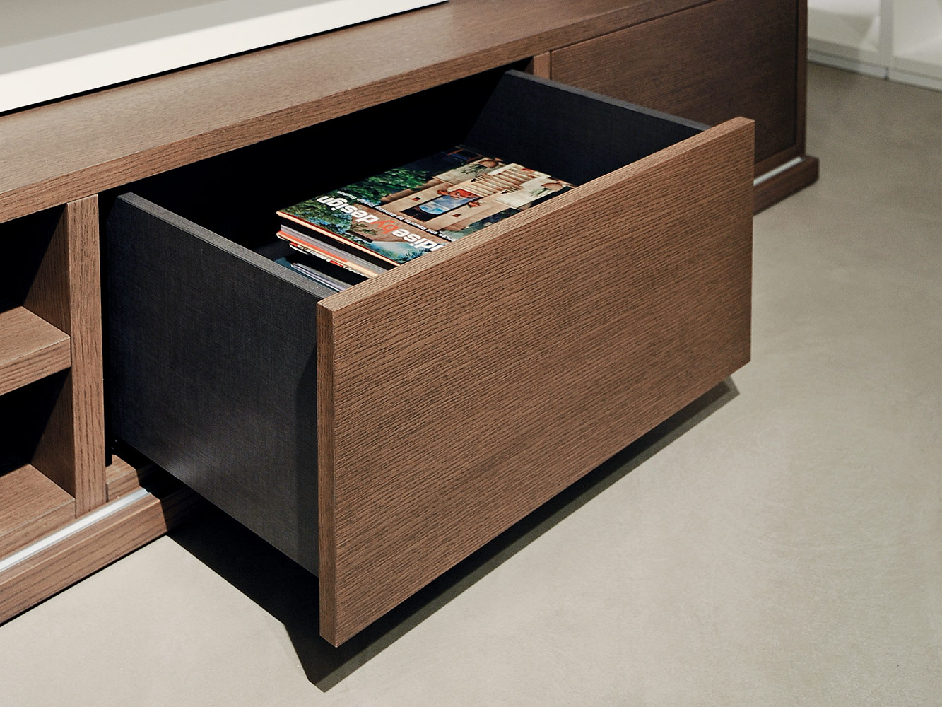 Developed to ensure that drawers of any width can be opened with minimum effort. Applying pressure on any part of the drawer front (even at the extremities) is sufficient for the drawer to open