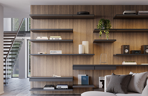 Das System wird durch die Excessories-Kollektion ergänzt, eine Auswahl an edlen Möbel-Accessoires, die exklusive Ankleideräume, Design-Bücherregale und viele weitere personalisierte Einrichtungslösungen ermöglichen.