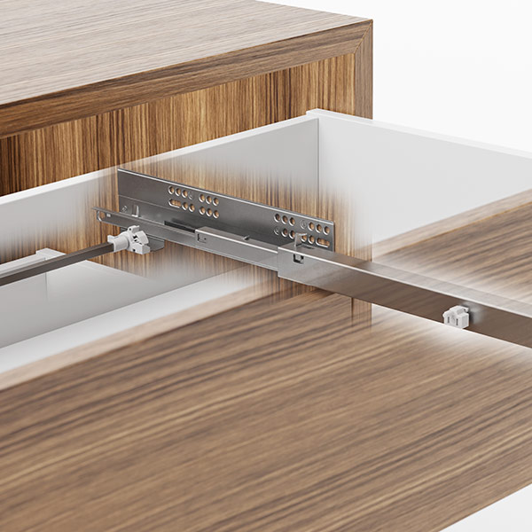 El sistema de sincronización para guías Futura con abertura Push nace con el objetivo de permitir la abertura de cajones de cualquier ancho sin inconvenientes.