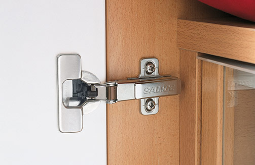 El perfil de aluminio, que incluye el mecanizado para las bisagras, puede instalarse tanto en el panel superior como en la base y elimina la necesidad de mecanizar por el canto de la balda, facilitando la instalación de las bisagras.