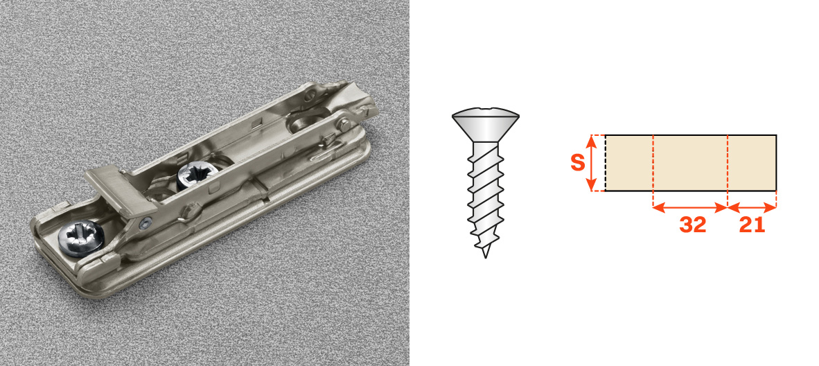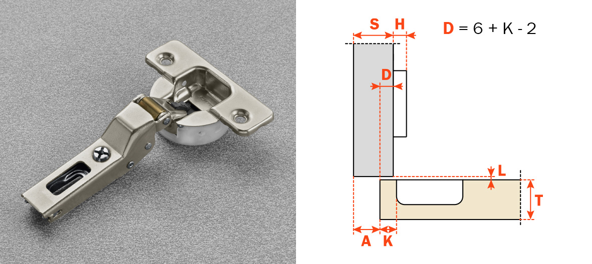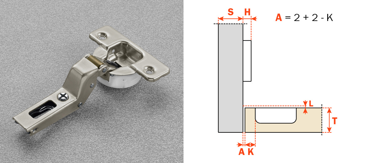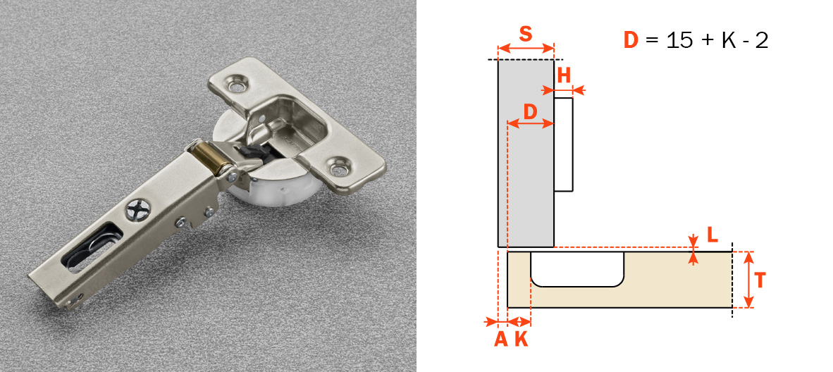 Gamma completa di cerniere disponibili per copertura totale o parziale del fianco, ante interne e montaggio controcollo.
