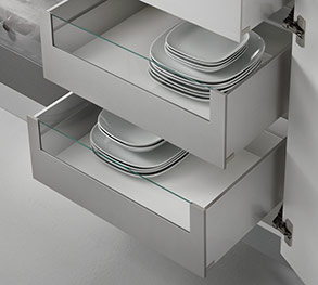Sistema caracterizado por movimento assistido e amortizado tanto na abertura quanto no retorno. Disponível também com abertura Push.